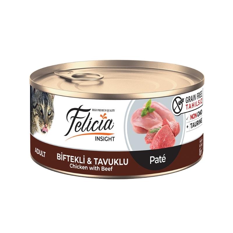 Felicia Tahılsız Biftekli ve Tavuklu Kıyılmış Yaş Kedi Maması 85gr
